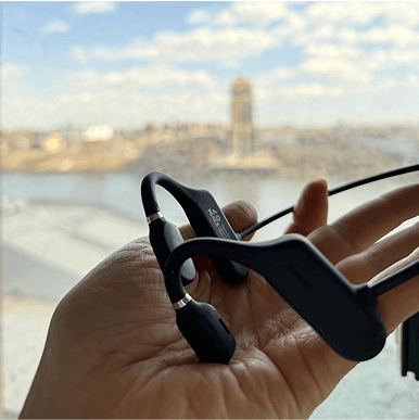 Sonoveo hörlurar med benledningsljud levererar kristallklar panoramisk ljudkvalitet samtidigt som dina öron förblir öppna för omvärlden – perfekta för löpning, cykling, träning eller för att hålla kontakten under din dagliga rutin.